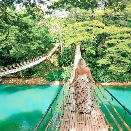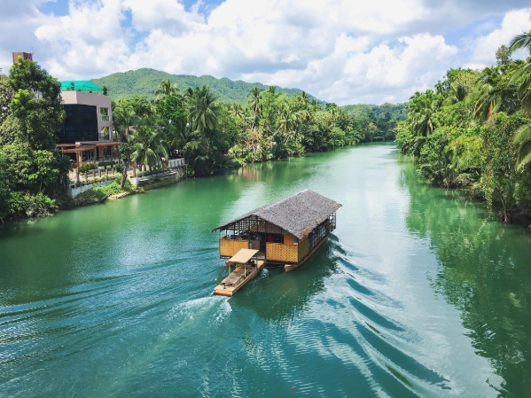 Loboc River: Green water, palms, and calm cruising. Lunch boats and paddleboards are common.