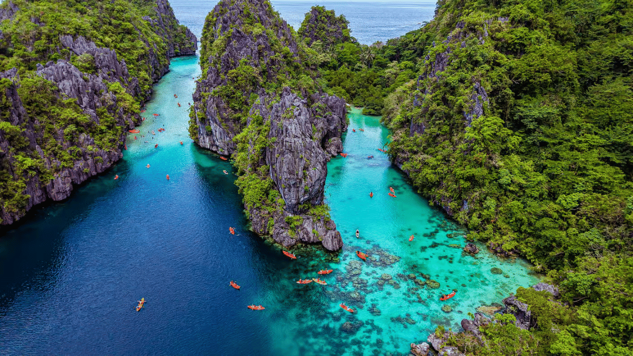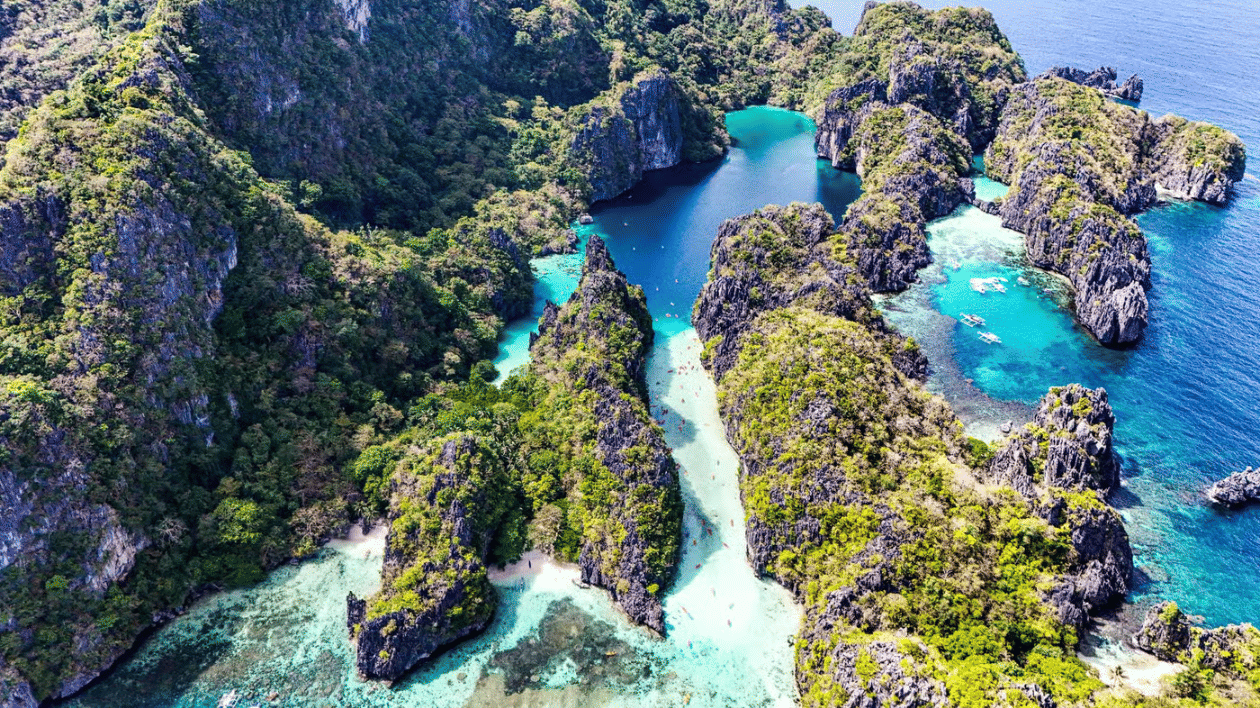 Experience El Nido’s most iconic tour with stunning drone shots of your island adventure, exploring Big Lagoon, Secret Lagoon, and other breathtaking spots on a scenic group boat tour.